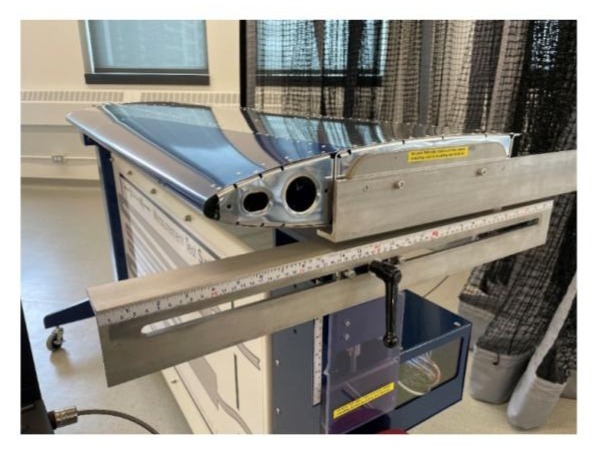 A wing section is installed in a test structure and the force is applied. The strain gauges that are installed on the test structure are used to record and analyze the data from the experiment.